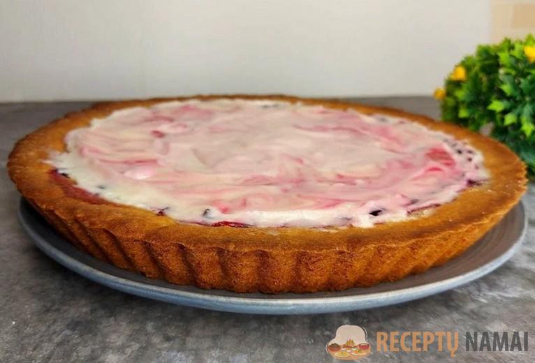 Užtepkite uogų mišinį ant tešlos viršaus.