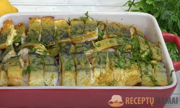 Dėl marinato skumbrė orkaitėje pasirodė daug skanesnė nei tik po rūkymo.