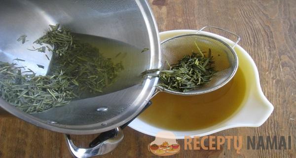 - Įdėkite rozmarino ir leiskite jam prisitraukti bent 30 minučių. Geriausia – palikite užpilą per naktį.
