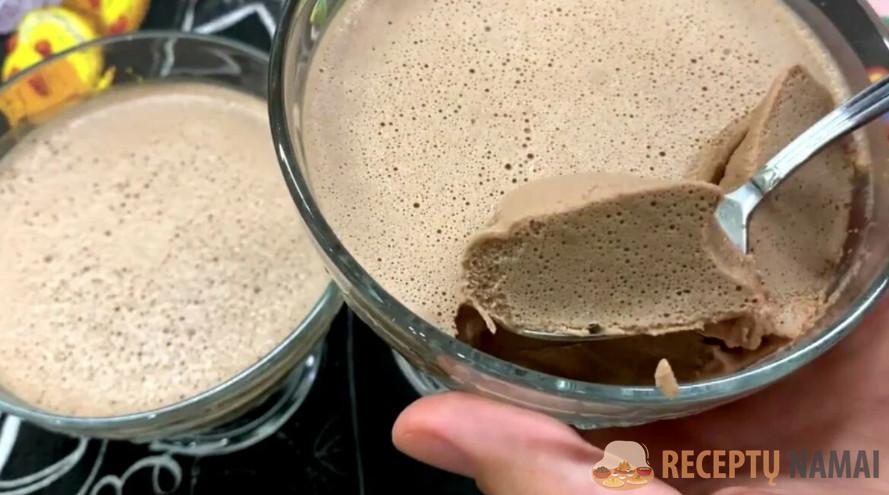 Supilkite gatavą desertą į formeles, uždenkite plėvele ir padėkite į šaldytuvą, kad sustingtų.
