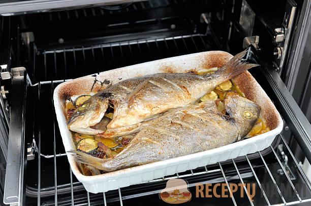 - Žuvį pašalinkite žvynus, pelekus, išdarinėkite. Pašalinkite juodą plėvelę.