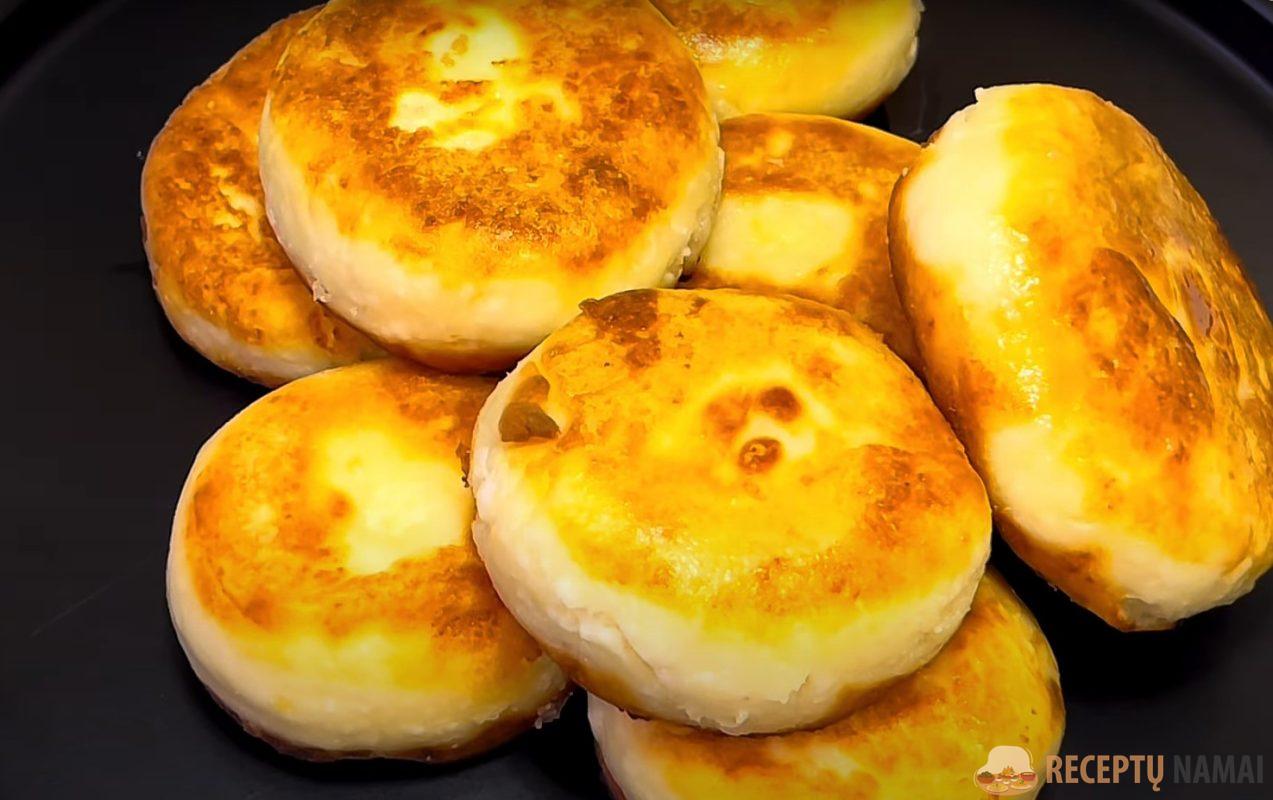 Gausite skanius paprastus sūrio pyragėlius kiekvienai dienai. Juos galima patiekti su grietine, kondensuotu pienu, uogiene.