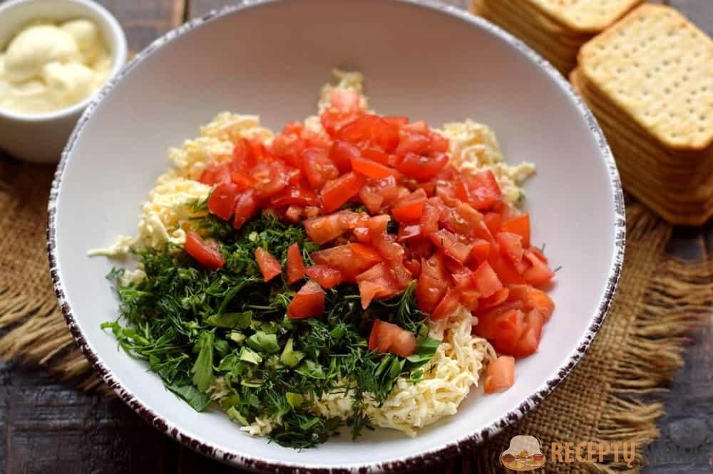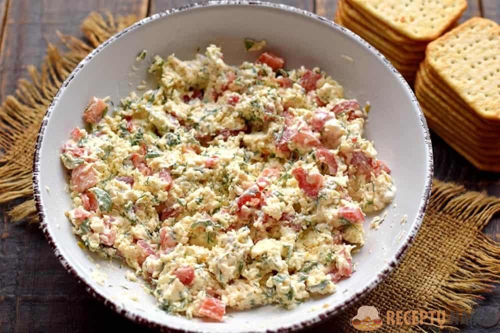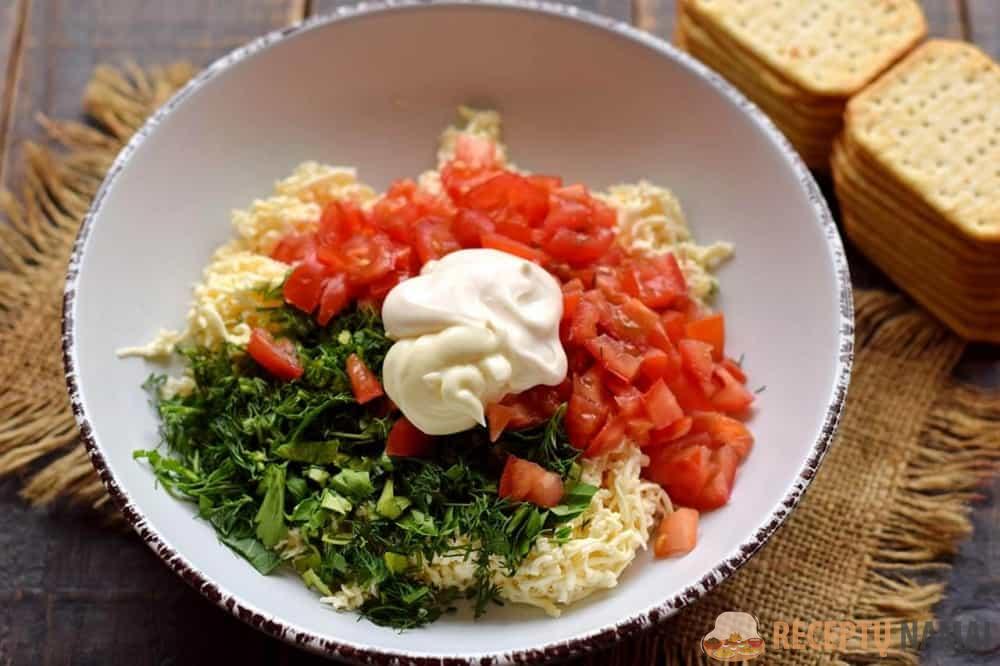 Jei norite greitai paruošti ką nors originalaus, tai yra jūsų pasirinkimas. Šiam patiekalui tinka bet koks minkštas lydytas sūris. Švelnaus kreminio skonio derinys su daržovėmis ir aštriu česnaku nepaliks abejingų. Jei prie stalo sėdi vaikai, galite apsieiti be česnako ir prieskonių, o majonezą pakeisti jogurtu arba grietine.