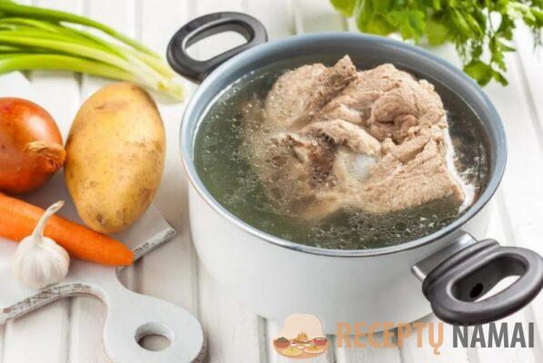 . Pirmas sluoksnis – virtos mėsos gabaliukai.