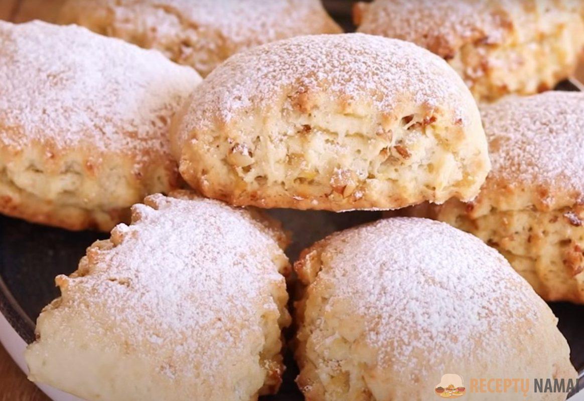 Iškepusius sausainius galima apibarstyti cukraus pudra. Pasirodo įdomūs rūgštūs sausainiai su citrinų įdaru.