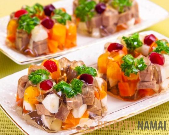 Papildomam porcijų papuošimui galite palikti šiek tiek sultinio, šiek tiek išbalinti jį grietinėle (arba grietine) ir, sustingus užtepėlei, supilti į formeles dar vieną maždaug 1 cm storio sluoksnį ir leisti želė galutinai sustingti.