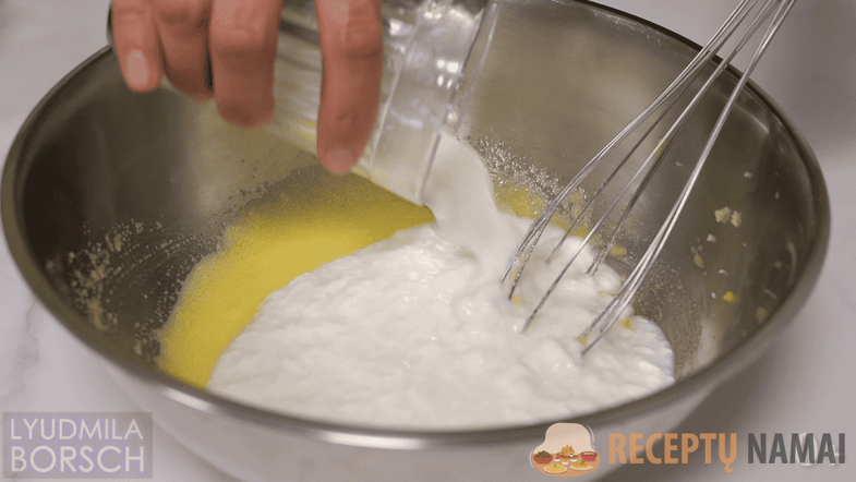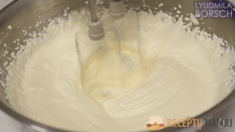 Įmaišykite grietinę, aš imu 20 proc. Ir toliau plakite.