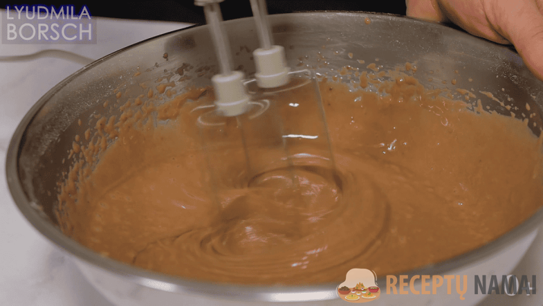Dabar plaktuvu arba maišytuvu gerai išmaišome maždaug dvi ar tris minutes.