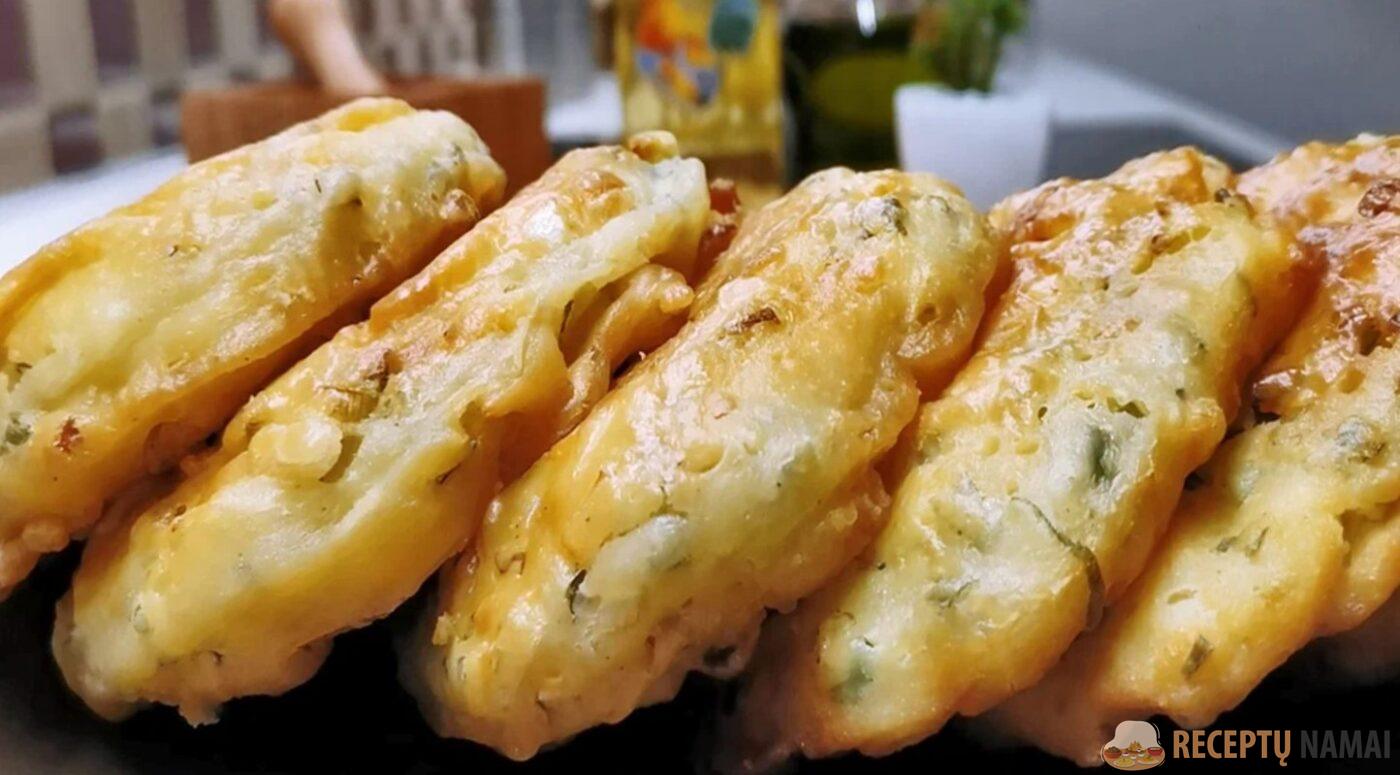 . Su šaukštu pilkite tešlą į keptuvę, įkaitintą su augaliniu aliejumi, ir kepkite paplotėlius ant silpnos ugnies, kol paruduos iš abiejų pusių. Galite kepti po dangčiu, taip jie išeis puresni.