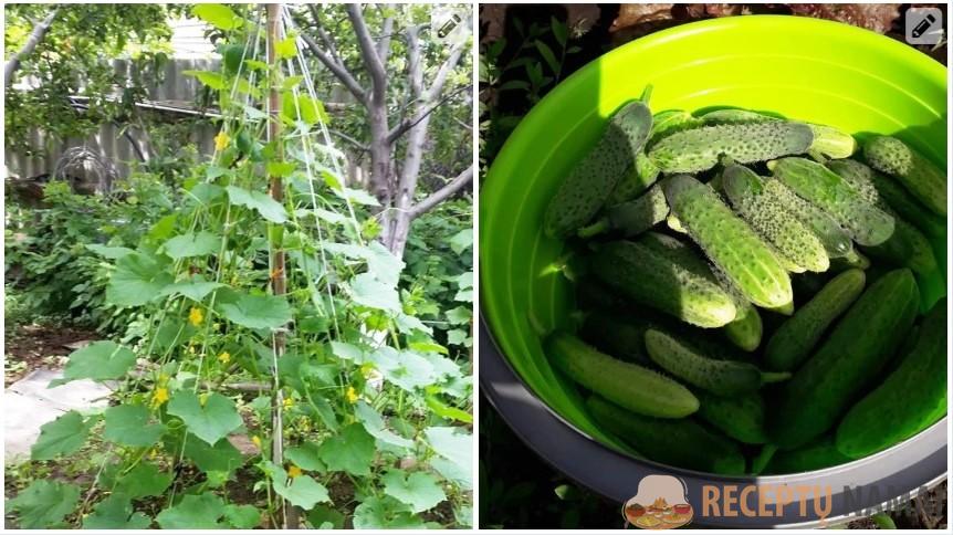 Svarbiausia – pirmą kartą – surišti agurkų šakas ir nukreipti jas į viršų, tada jie tai padarys patys. Taip gausite žalią agurkų šakelių “Kalėdų eglutę”. Rinkti iš jos derlių – vienas malonumas.