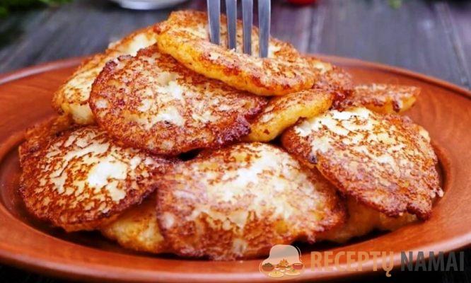 Stambia tarka sutarkuokite sūrį, juo padenkite paruoštos tešlos viršų.