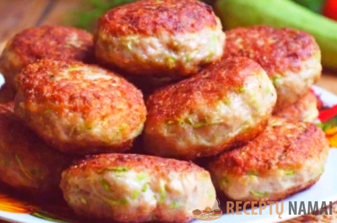 Tik pusė kilogramo maltos mėsos ir cukinija. Neturiu laiko kepti kotletų, jie valgomi karšti