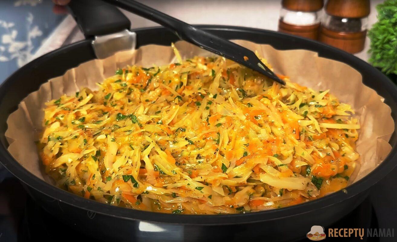 Rezultatas – puikus sotus kopūstų troškinys su švelniu padažu.