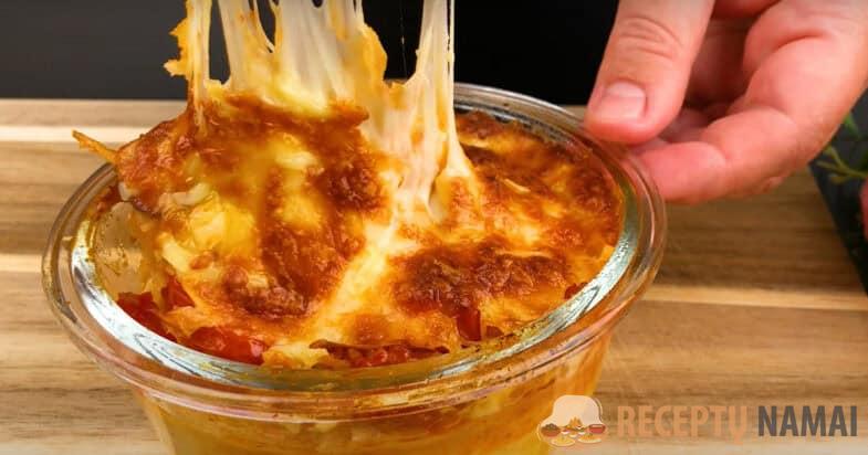 Troškintuvas dedamas į orkaitę, įkaitintą iki šimto aštuoniasdešimties laipsnių temperatūros. Patiekalas kepamas apie dvidešimt minučių, kol sūris išsilydo ir įgauna apetitą keliančią plutelę. Rezultatas būna nepaprastai skanus, o aromatas užpildo visus namus, todėl namiškiai su nekantrumu laukia vakarienės.
