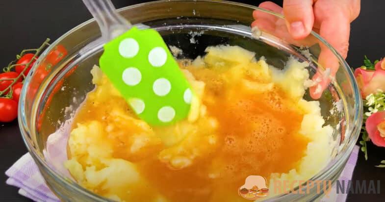 Bulves reikia nulupti, supjaustyti stambiais gabalais ir išvirti iki minkštumo šiek tiek pasūdytame vandenyje. Tada patogiu būdu paverčiama bulvių koše. Atskirai šakute išplakami kiaušiniai, į kuriuos įberiama druskos ir pipirų, šis mišinys supilamas į bulvių masę ir gerai išmaišomas.