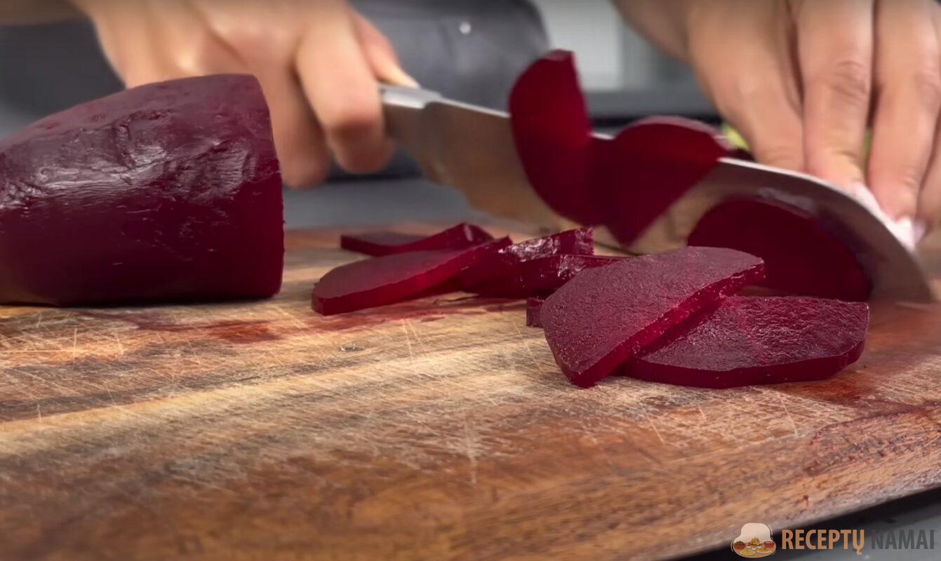 Gausite greitas ir sveikas burokėlių salotas. Jos yra dietinės, nes jose nėra figūrai kenksmingo majonezo.