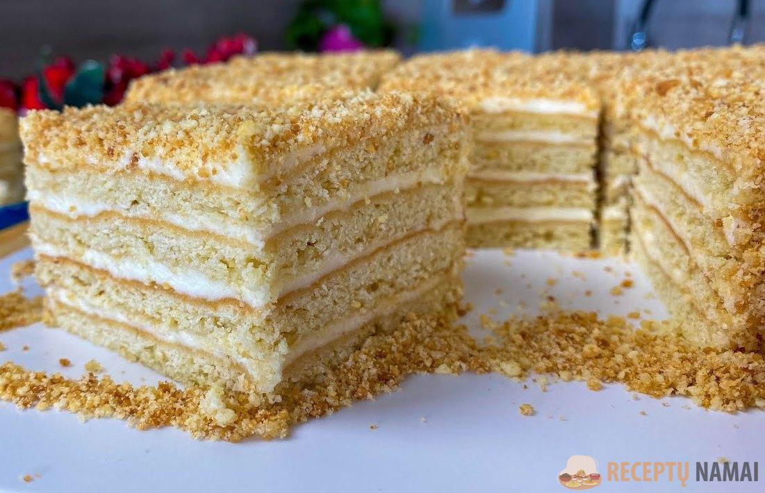 Jums patiks šis grietinės tortas, ypač su švelniu sviesto kremu.