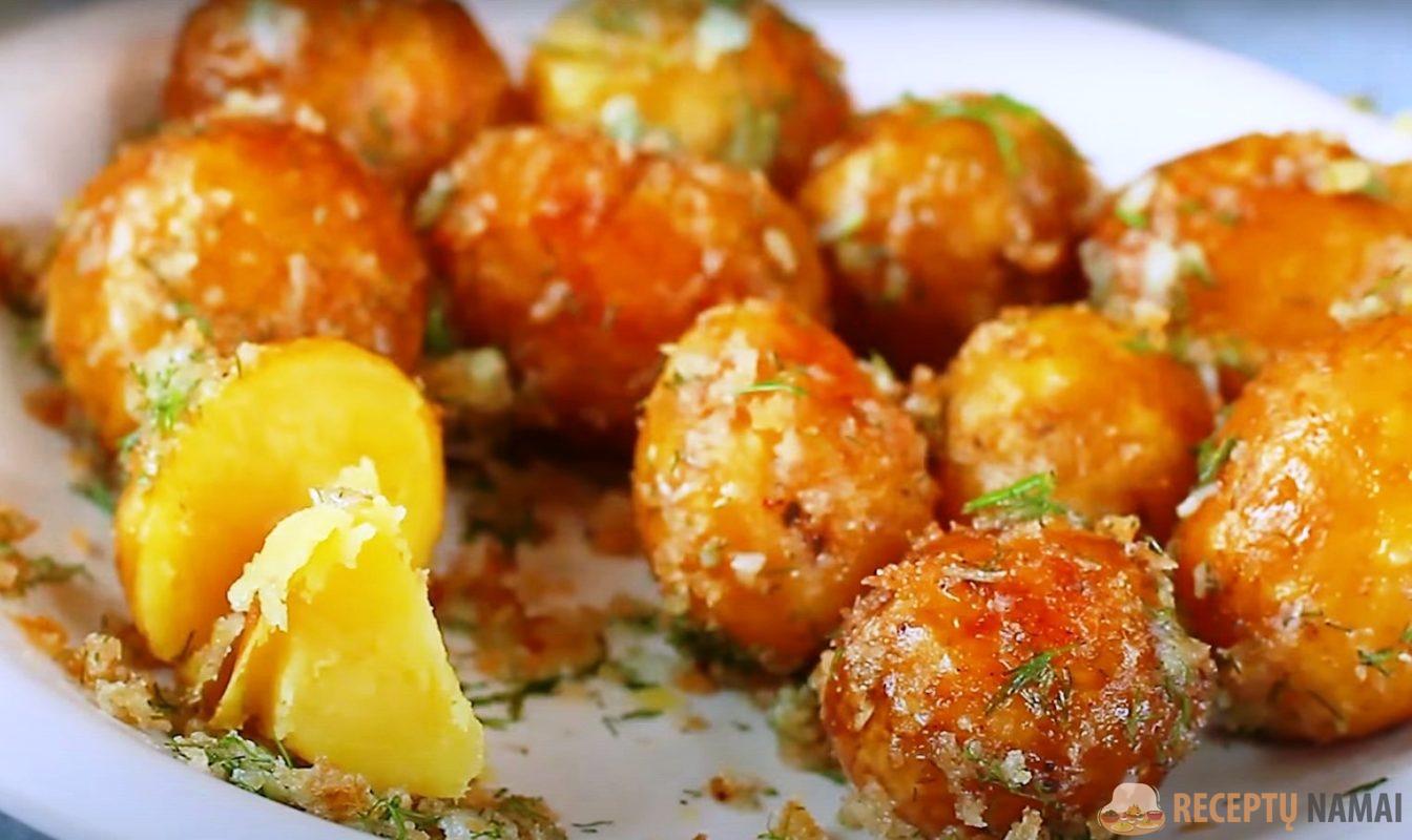 Taip gaunamos puikios keptos bulvės. Šis patiekalas gali būti geras garnyras prie mėsos, daržovių ir žuvies.