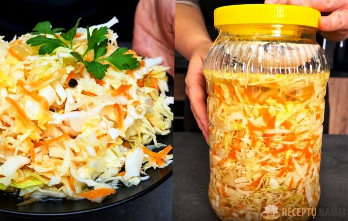 Uždarytą kopūstą palikite šaldytuve 8-12 valandų. Ryte turėsite gardžius traškius kopūstus.