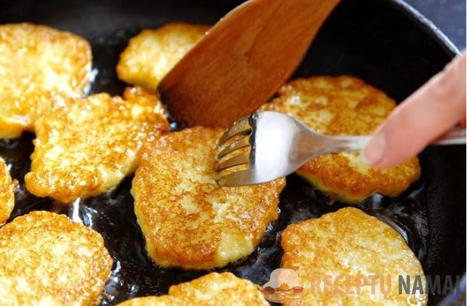 - Kepkite po 2-3 minutes iš kiekvienos pusės, kol taps auksinės spalvos ir traškūs. Pakartokite su likusiu mišiniu.