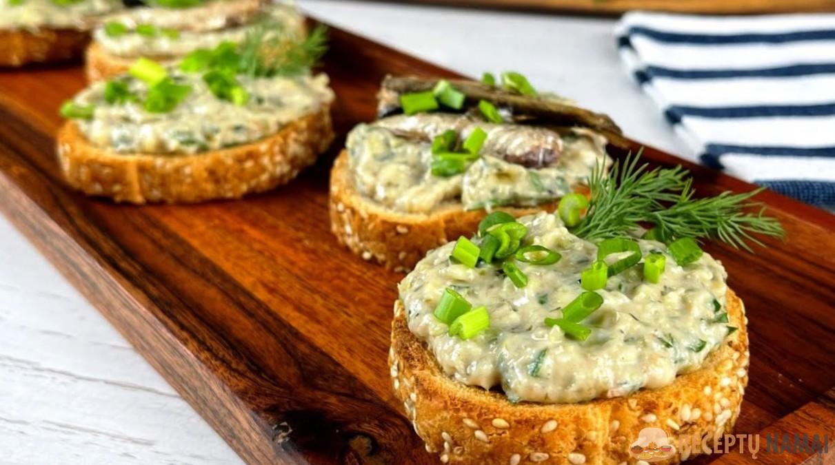 Taip greitai galėjome paruošti gerus pusryčius ar užkandį kelioms dienoms. Šiuos sumuštinius galima derinti su smulkintais svogūnais, papuošti nesmulkintais šprotais.