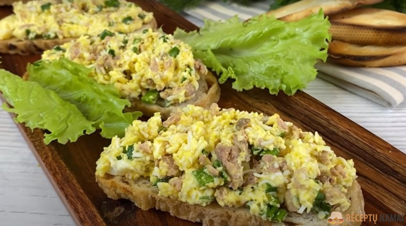 Taip greitai galėjome paruošti gerus pusryčius ar užkandį kelioms dienoms. Šiuos sumuštinius galima derinti su smulkintais svogūnais, papuošti nesmulkintais šprotais.