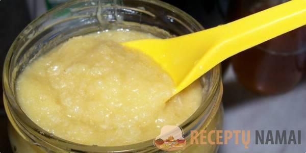 Nuplaukite citriną, supjaustykite ją gabalėliais ir sutrinkite. Nulupkite petražolės šaknį, supjaustykite ją gabalėliais ir sutrinkite. Tada sumaišykite viską ir įdėkite medaus, cukraus pudros ir alyvuogių aliejaus. Visus ingredientus sutrinkite iki vientisos masės. Mišinį laikykite stikliniame butelyje šaldytuve, nes jis gali sugesti.