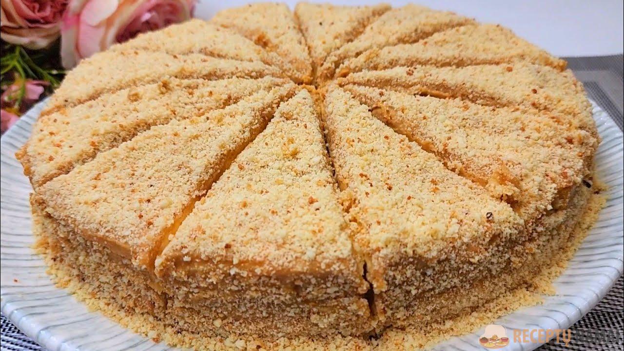 Sudedu tortą, visus pyragaičius aptepu kremu, kremu aptepu viršų ir šonus. Pabarstykite trupiniais.