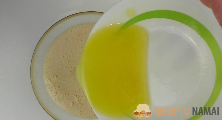 Turiu greito paruošimo mieles, jos puikiai pakelia bet kokį riebų tešlą. Bet jei naudoju žalias presuotas mieles, jų beriu tris kartus daugiau nei sausų. Svarbu, kad mielės būtų šviežios. Viską sumaišau.