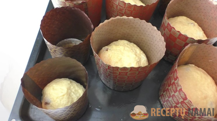 Po 1,5 valandos kepalų viršus pasiekė viršutinį formų kraštą ir dabar galite juos įdėti į orkaitę.