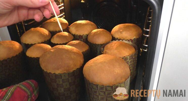 Velykiniai pyragai kepami 30–40 minučių, priklausomai nuo kepimo formos dydžio, 180 ℃ temperatūroje. Velykiniai pyragai neturėtų liestis vienas su kitu, tarp jų turėtų būti tarpas, kad orkaitės šiluma galėtų praeiti.
