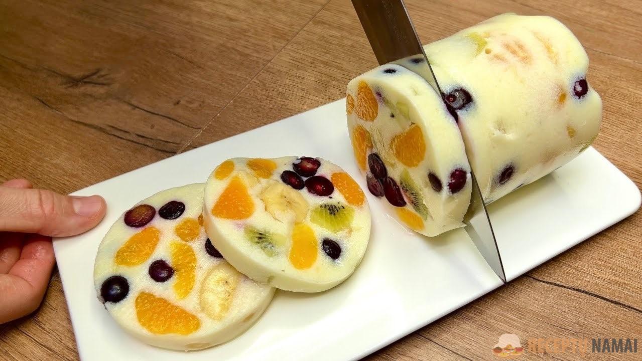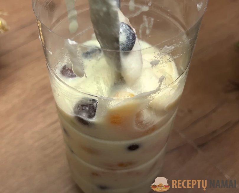 Peržiūrėkite greito deserto iš vaisių ir pieno receptą žingsnis po žingsnio: