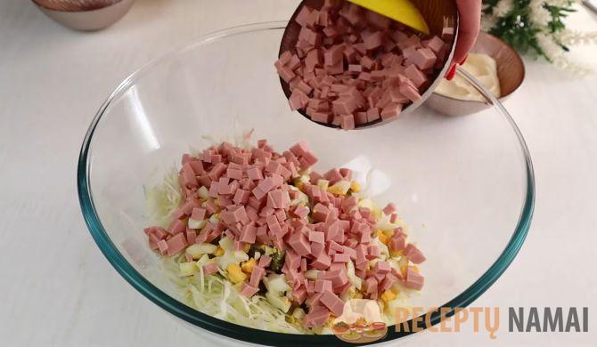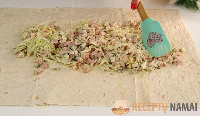 Kaip pasigaminti pitos suktinuką su kopūstais, marinuotais agurkais ir dešra receptas žingsnis po žingsnio