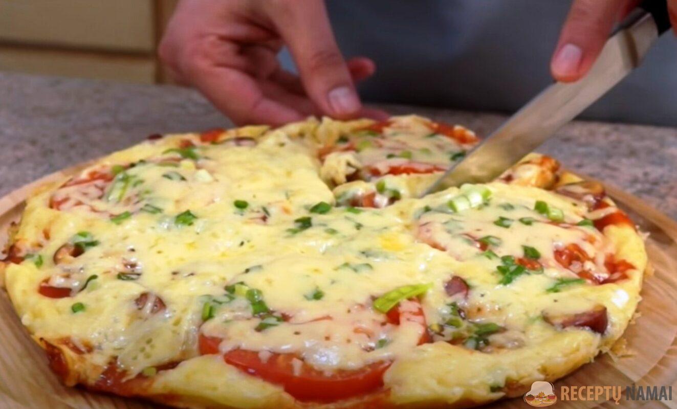 Šiandien paruošime greitą picą keptuvėje, kuri yra panaši į šiuolaikinę.
