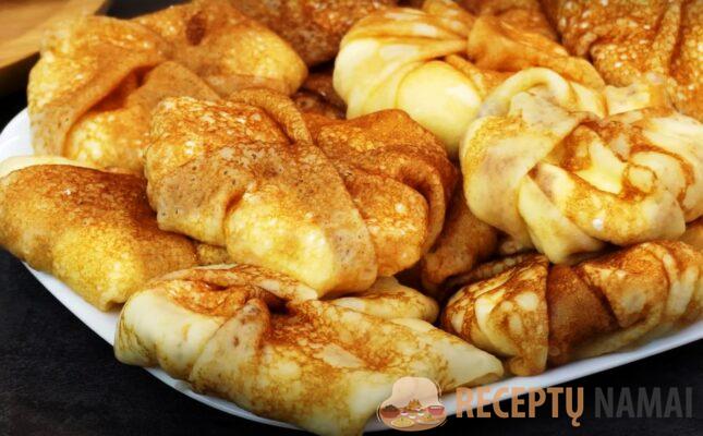 . Išplakti iki vientisos masės, supilti kvietinius miltus. Pagal skonį įberkite druskos ir maltų juodųjų pipirų. Taip pat reikės pusės arbatinio šaukštelio sodos