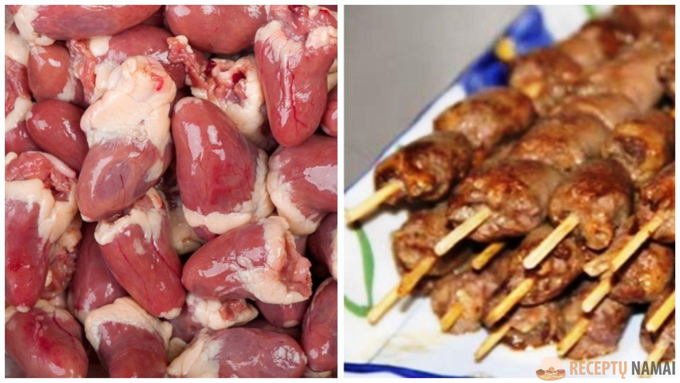 Marinuokite širdeles marinate 1 valandą ar ilgiau – jos bus skanesnės.