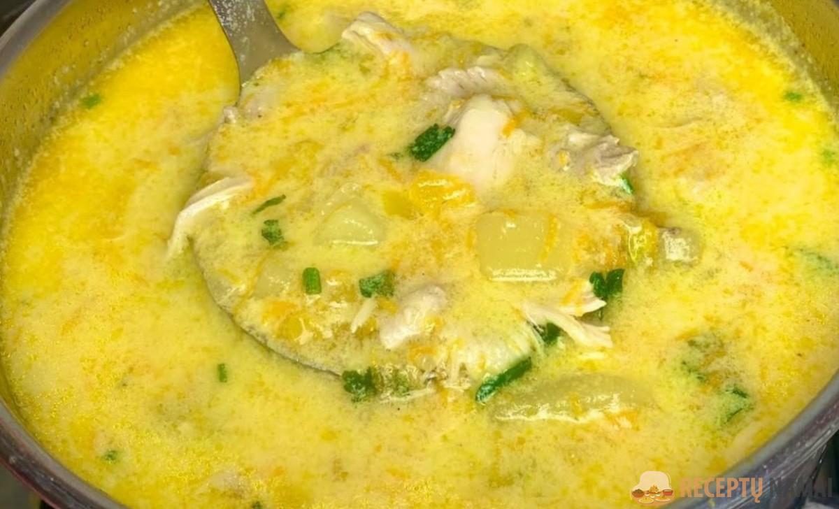 . Tada į sriubą supilame padažą, išmaišome. Paliekame sriubą užvirti, tada išjungiame ugnį ir paliekame ją po dangčiu 5 minutėms.