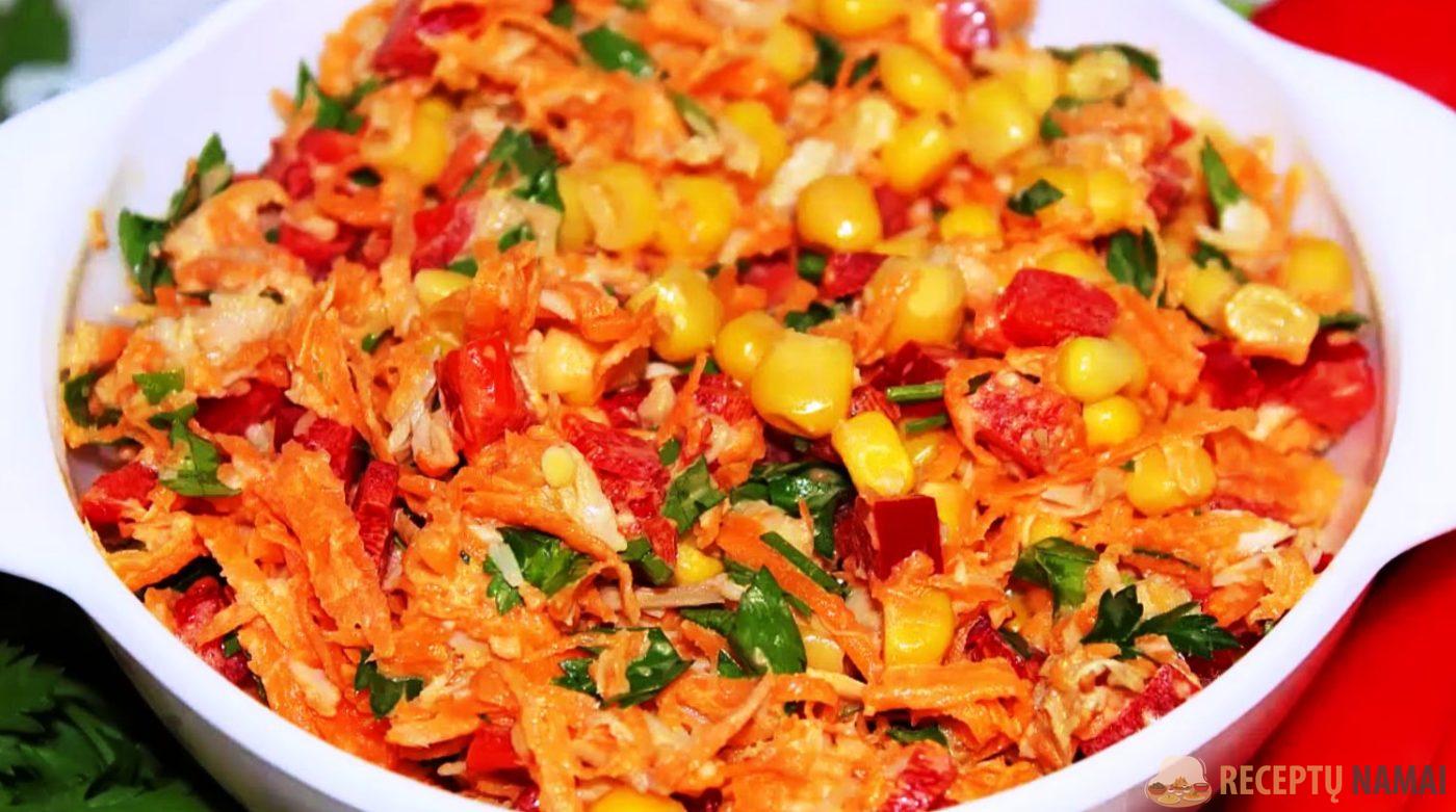 Galite pabandyti salotas gaminti ne su kukurūzais, o su konservuotais žirneliais.