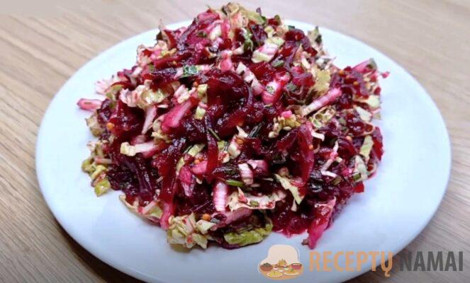 Šioms salotoms geriau vartoti naminį majonezą. Tai lengvas užkandžių patiekalas, kurį galima paruošti per 5 minutes.