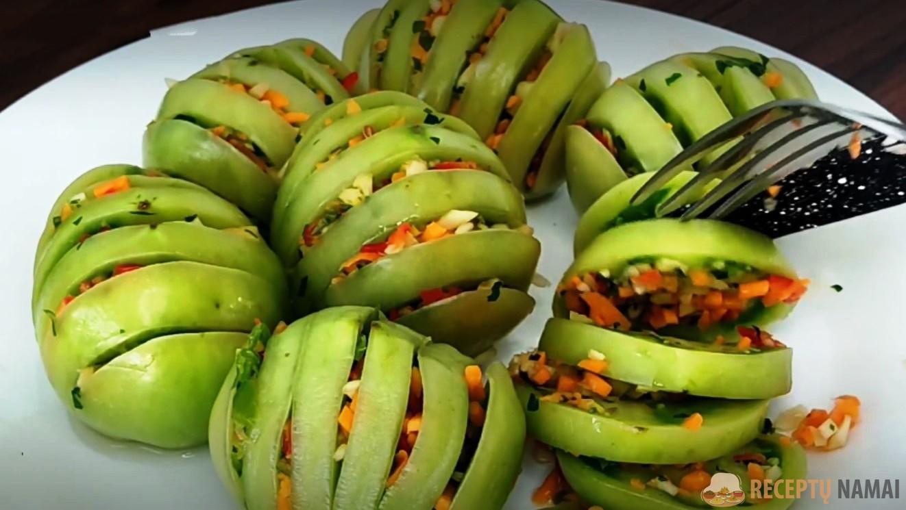 . Verta papasakoti apie įdarytų žaliųjų pomidorų gaminimo receptą.